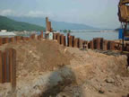 of pile sheet installation and excavation for pier